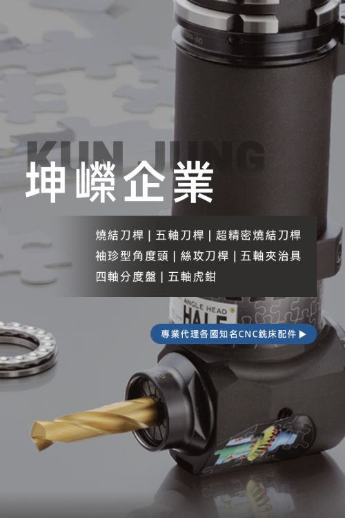 創立於1979年,專門代理銷售各國知名CNC銑床配件。以專業的知識結合優良的產品,並提供客戶最完善的售後服務! 主要產品以燒結刀桿、五軸刀桿、超精密燒結刀桿、袖珍型角度頭、抗震刀桿、搪孔刀桿、絲攻刀桿、五軸夾治具、四軸分度盤、五軸分度盤、五軸虎鉗、倍力虎鉗、刀桿清洗機、快速定位治具、筒夾刀桿、CBN刀具、油霧回收機等產品。