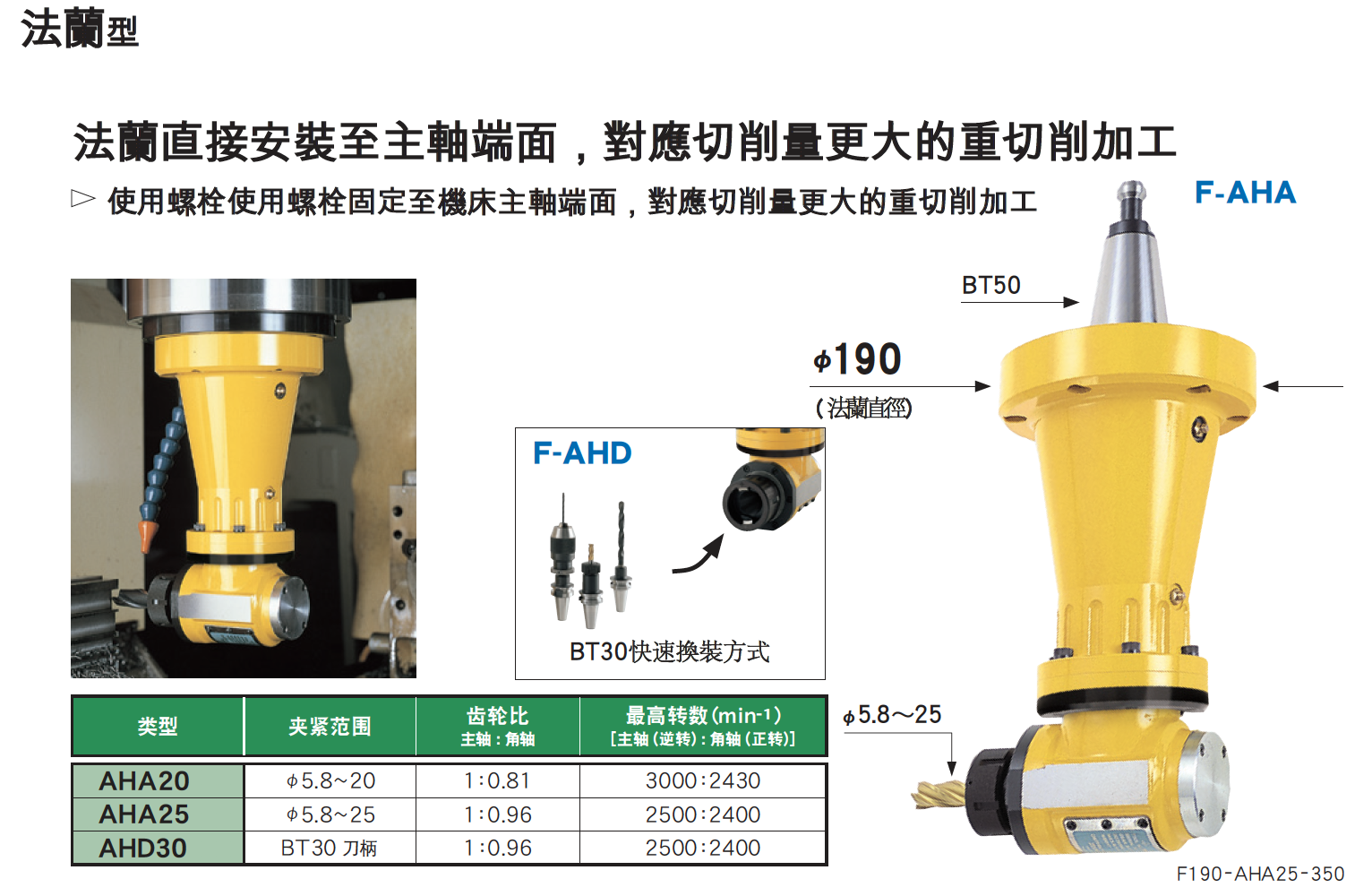 法蘭直接安裝至主軸端面,對應切削量更大的重切削加工。