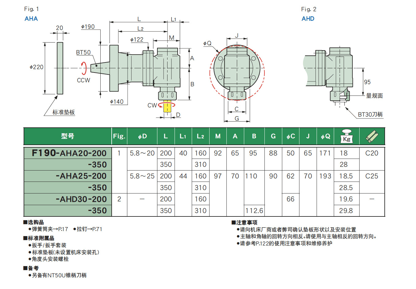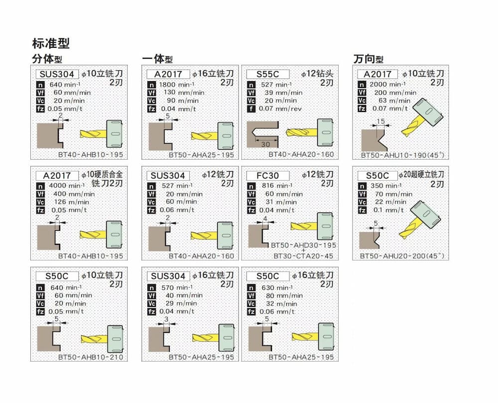 ADH型使用BT30刀桿快速交換方式。