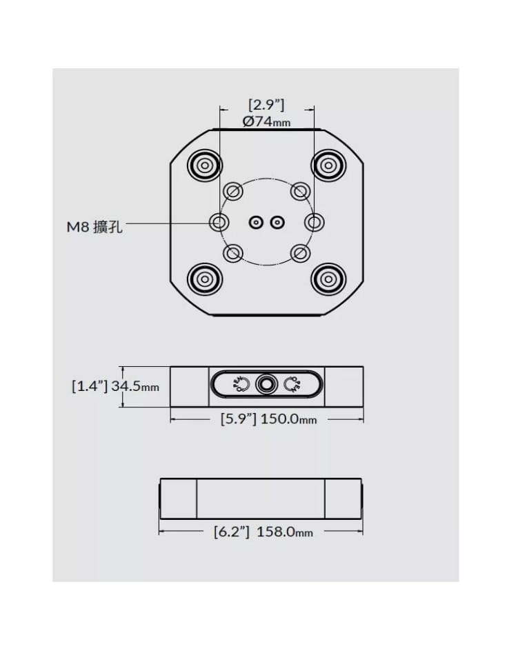 尺寸:150mm x 158mm x 34.5mm